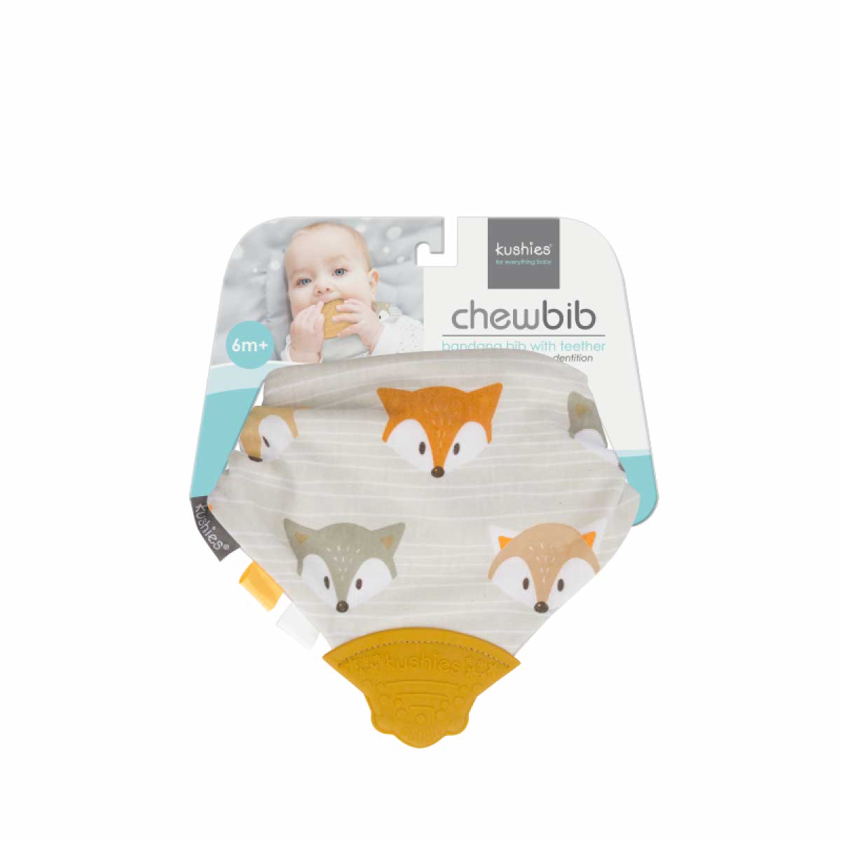 The perfect bib for drooling and teething babies! KUSHIES Chewbib combines the protection of a drool bib with the convenience of a built-in teether. 3 layers of super soft cotton in modern prints team up with a soft, flexible and textured premium silicone at the end. Silicone is of food grade quality.