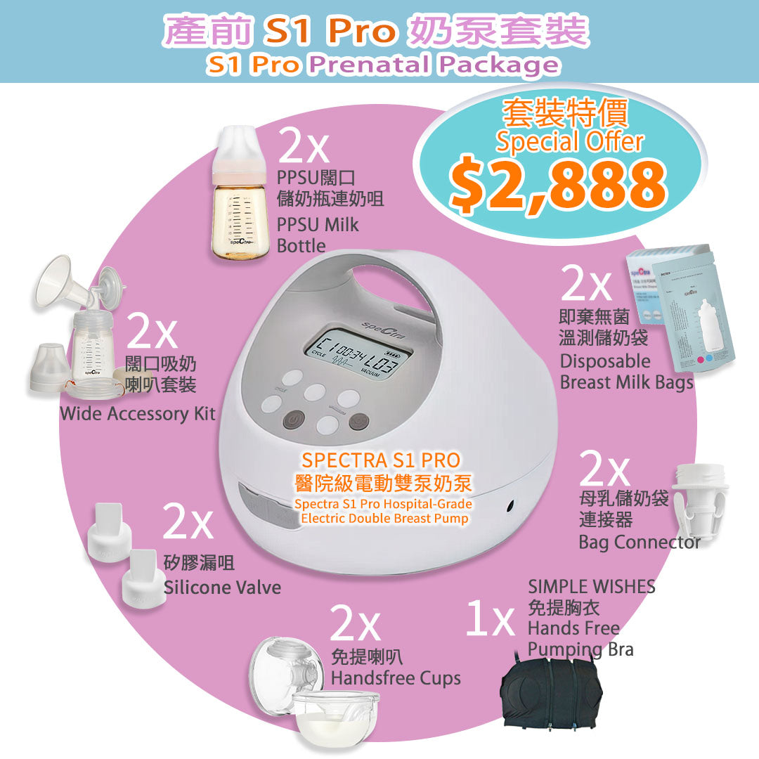 Prenatal SPECTRA S1 Pro Rechargeable Hospital Grade Breast Pump and Accessories Set (15 Months Warranty & Free Delivery)