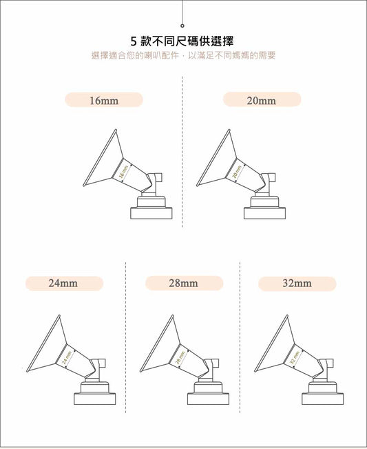【新產品】SPECTRA 闊口吸奶喇叭套裝 連160ml儲奶瓶及S碼仿母乳輕柔矽膠奶咀 (單邊) 五款尺碼: 16-32毫米