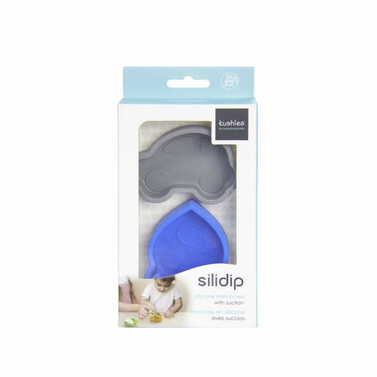 KUSHIES 矽膠雙色吸盤迷你碗 (火箭和汽車, 小鳥和蝴蠂, 蘋果和小熊.)