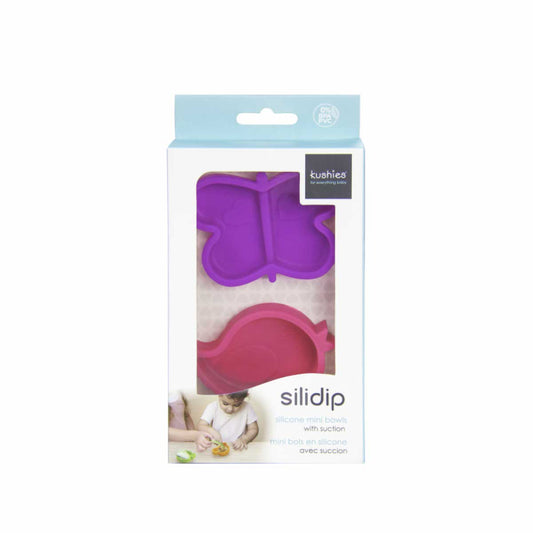 KUSHIES 矽膠雙色吸盤迷你碗2件裝 小鳥和蝴蝶