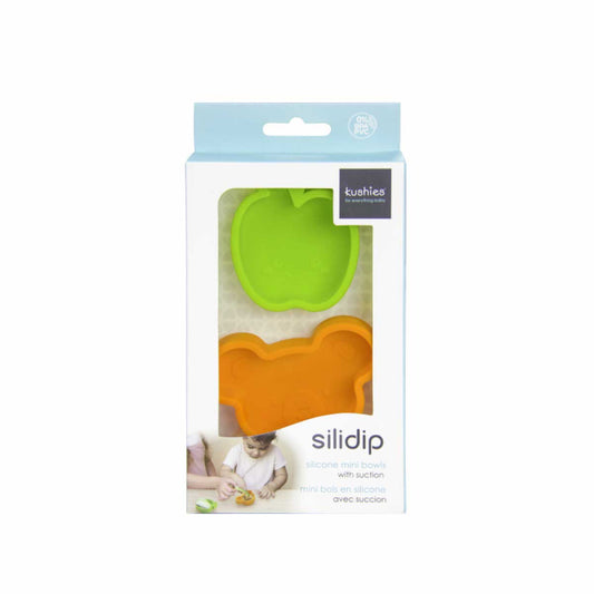 KUSHIES 矽膠雙色吸盤迷你碗2件裝 蘋果和小熊