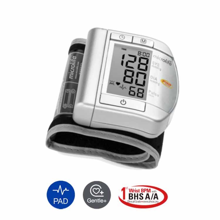 Microlife W100 全自動手腕式血壓計,讓用戶可以簡單地透過手腕進行快速準確的血壓測量。經過臨床測試,產品通過英國BHS高血壓協會認證,並獲得最高的A/A級別。此外,它能夠記錄多達200組的測量值,並在每次量度血壓期間,自動偵測脈搏心律不正。