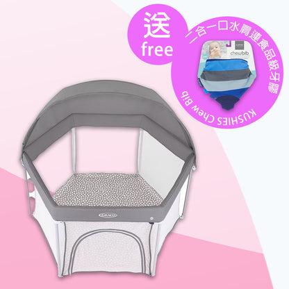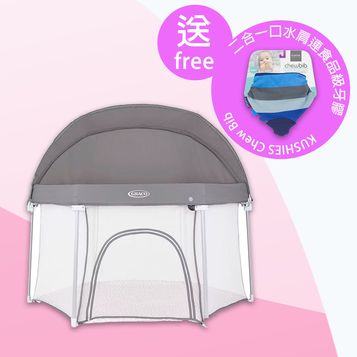 GRACO EVERGO™ 輕便摺合遊戲欄 - 淺灰 (送KUSHIES Chewbib二合一口水肩連牙膠)
