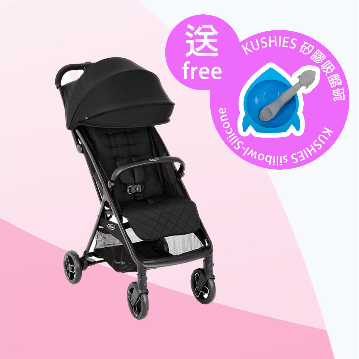 GRACO MYAVO™ 輕量型秒收手推車連雨篷-黑色 (送KUSHIES矽膠吸盤碗匙套裝)