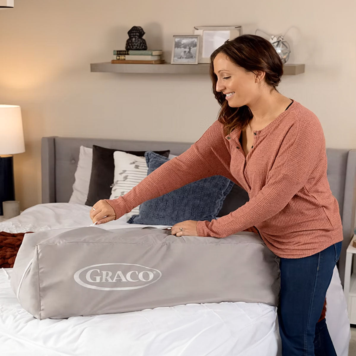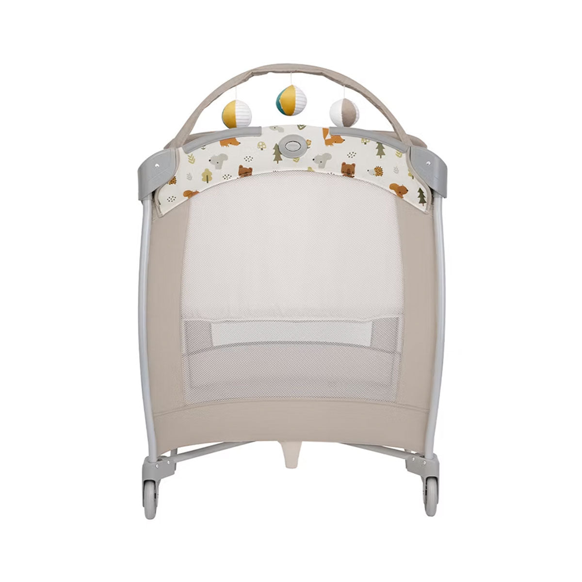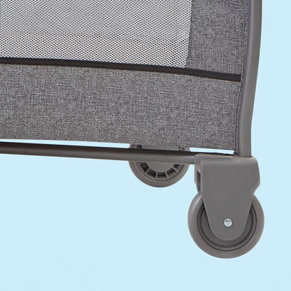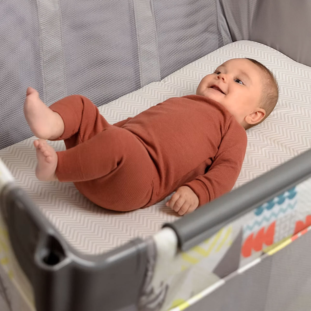 準備好隨時攜帶這個嬰兒遊戲床嗎?只需借助附設的 2 個輪子,便可以輕鬆地將其從一個房間運送到另一個房間。透過使用 Graco標誌性的按鈕折疊功能,輕鬆完成折疊,然後使用附送的收以納袋讓旅行變得輕而易舉。