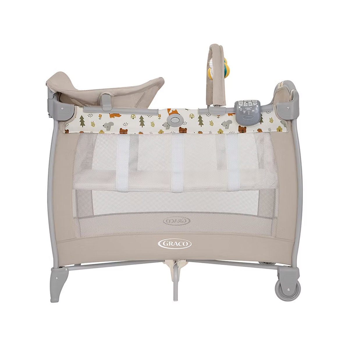 這是GRACO系列中功能最齊全的嬰兒遊戲床!從寶寶的第一天起,您就可以利用 Contour Electra 的可拆式搖床給他提供舒適溫馨的睡眠環境。隨著孩子的成長,您一定會喜歡這款寬敞的遊戲嬰兒床,它配備有更換台、吊掛玩具以及可讓您控制音樂、振動和夜燈的可拆式主控台。