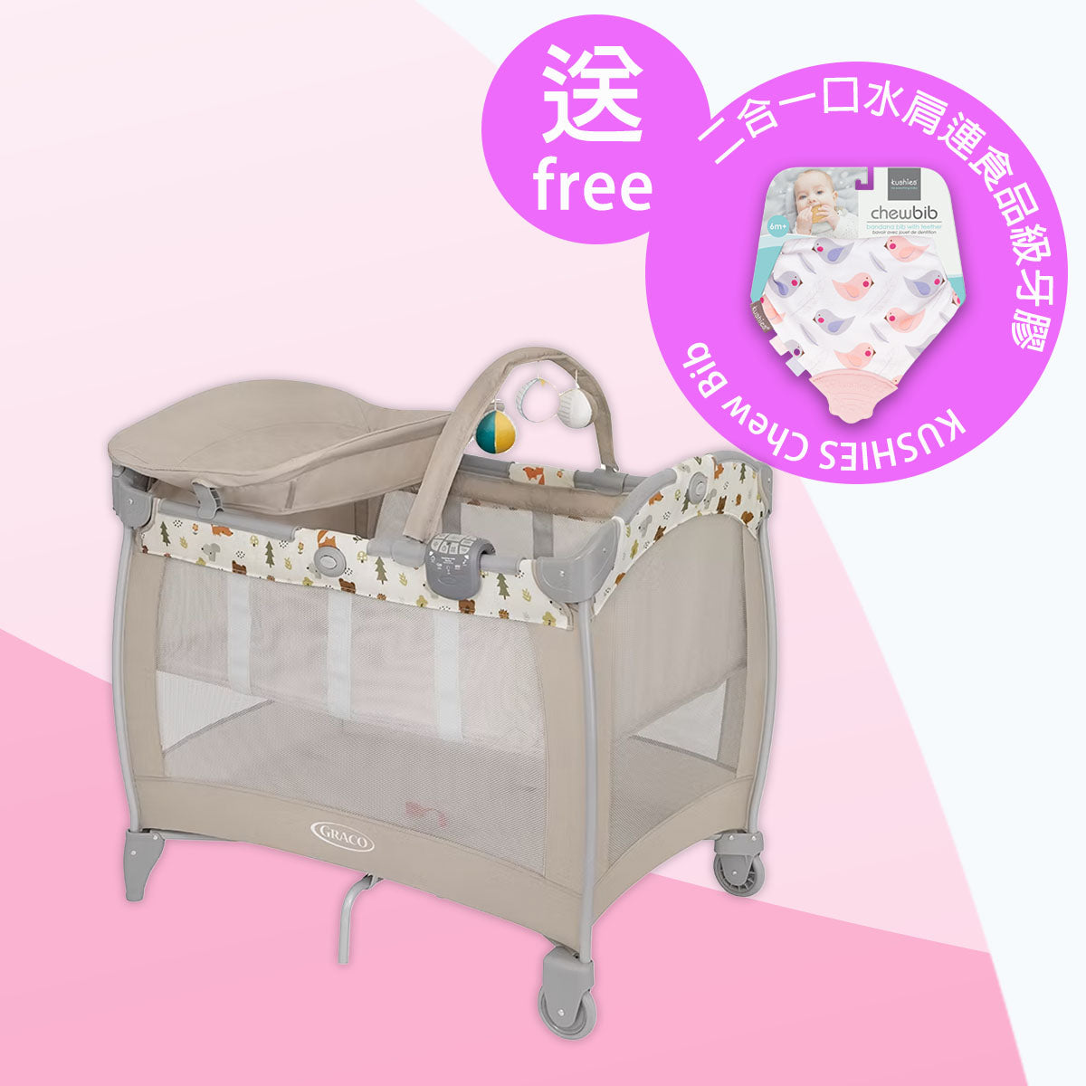 GRACO CONTOUR® ELECTRA 嬰幼兒安撫遊戲床連更換台 - 自然足印 (GA2209114),附送 KUSHIES Chewbib 二合一口水肩連牙膠(價錢: $185),款式及顏色隨機附送,禮品數量有限,送完即止。
