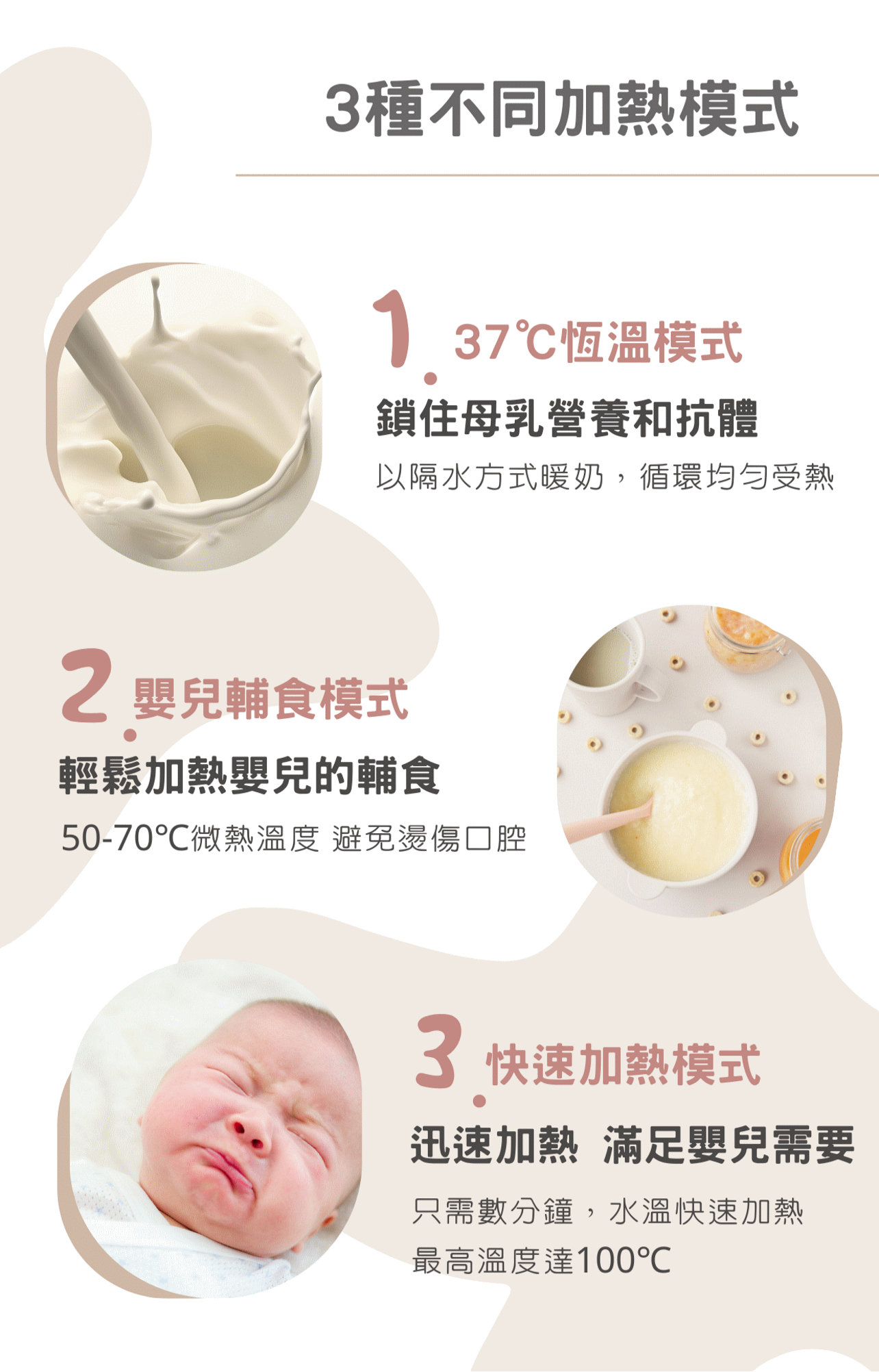 簡易地快速加熱母乳和嬰兒輔食