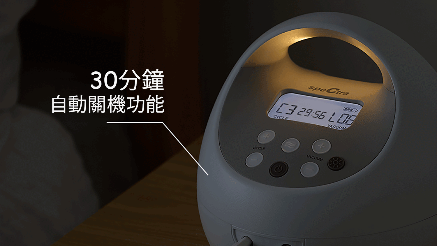 內置30分鐘定時自動關閉功能,幫助媽媽控制吸乳時間,避免電動奶泵使用時間過長。