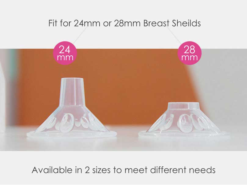 - 備有兩款尺碼的矽膠軟墊供選擇,以配合不同媽媽的需要