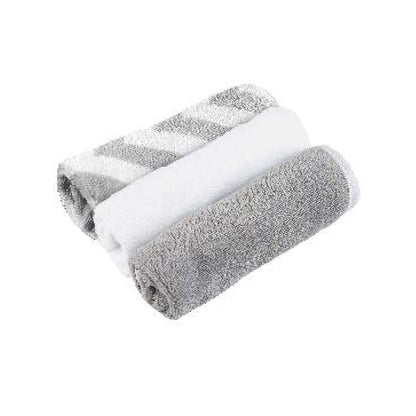KUSHIES 多用途雙層純棉方巾 (3條裝) 藍/粉紅/灰條/灰白